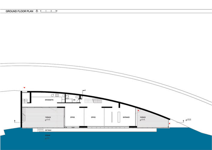 Bina sokak tarafı boyunca 67 m çapında kesin yayın üzerine oturur. Yapının geometrisine bağlı olarak çatı paraboliktir, ve sabit ve tek eğimi yoktur. Mimari tasarımın dikte ettiği tüm detaylar firmamız tarafından çalışılmış ve yerine uygun özel imalatlarla uygulanmıştır.